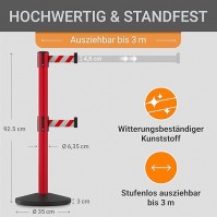 Gurtpfosten 4er Set Personenleitsystem 2 Sperrbänder pro Pfosten Pfostenhöhe 100 cm Gurtlänge 3,0 m Gurtbandbreite: 4,8 cm Kunststoffpfosten rot Gurtfarbe rot/weiß -wolk