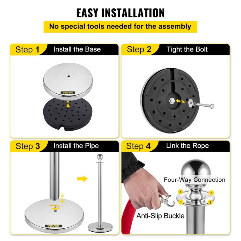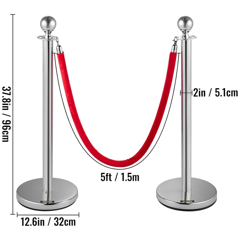 Control Barriers Edelstahl Absperrpfosten Seil Abgrenzungsständer Kugelkopf 3 Rote Samtseile Silberne Säule 4 Stück