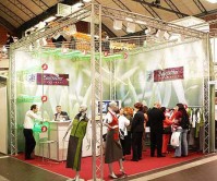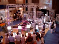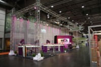 Traversen-Groundsupport aus 3- oder 4-Punkt-Traversen mit Konus-Schnellverbindern, 3-Wege Ecken und Boden/Wandplatten. Schneller Auf / Abbau und Super Optik.