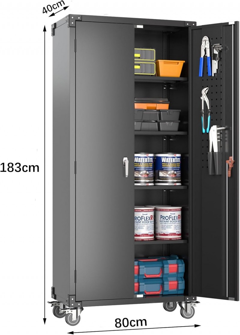 Metallschrank Stahlschrank Messeschrank Wertschrank auf Rädern Pegboard abschließbar 4 höhenverstellbare Böden Stahlblech Pulverbeschichtung abschließbar
