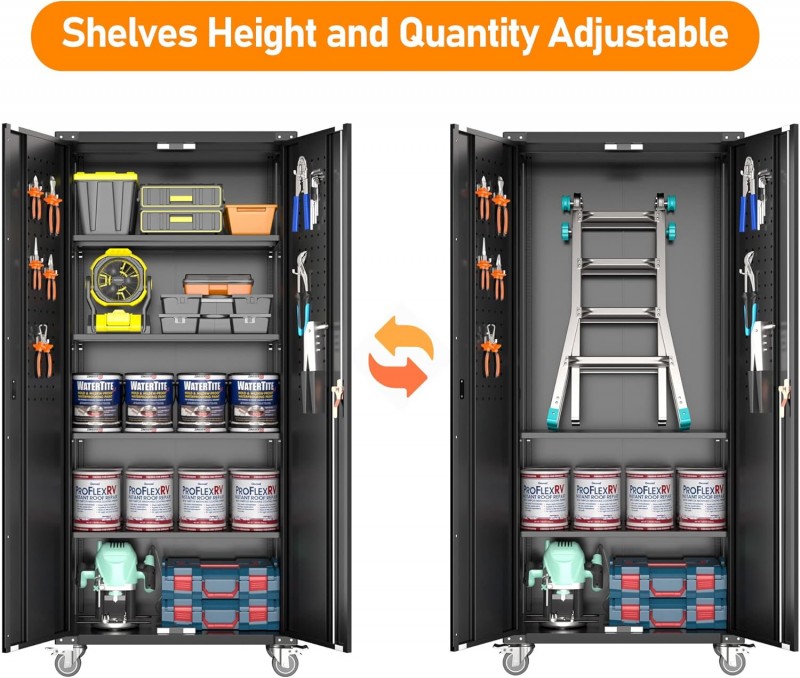 auf Rädern Pegboard abschließbar 4 höhenverstellbare Böden