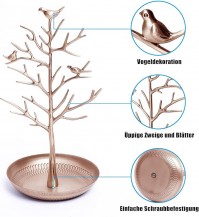 Schmuckhalter Baum Kettenständer Schmuckständer mit Vögel Deko Schmuck Baum für Ketten Ring Ohrring Armbandständer Ohrringhalter Metall Schmuckpräsentation
