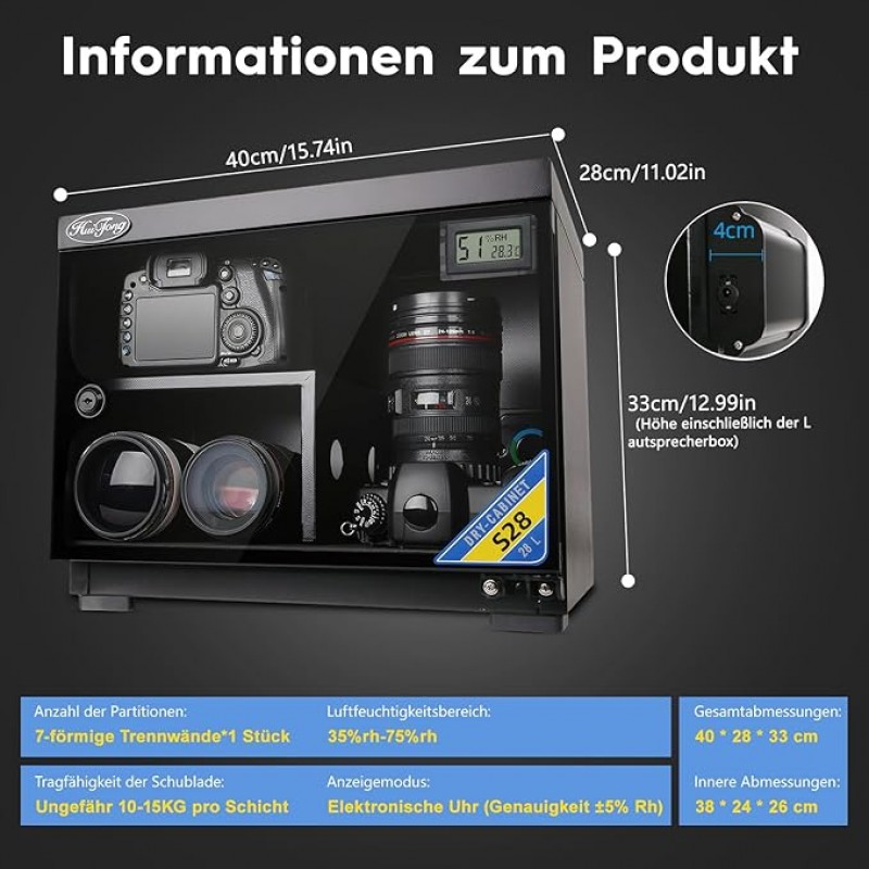 Kamera-Trockenschrank elektronischer Trockenschrank 28 L feuchtigkeitsdicht geräuscharm und energiesparend zur Aufbewahrung von Kameraobjektiv
