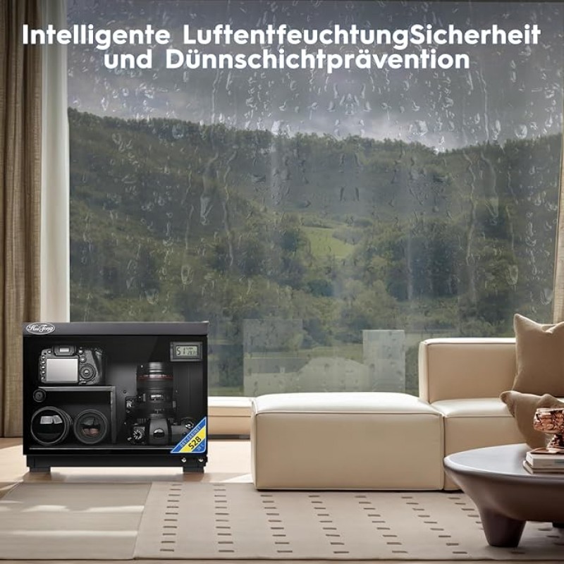 Sie können die relative Luftfeuchtigkeit in diesem Kameraobjektiv Lagerung