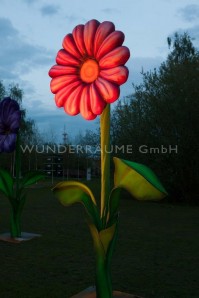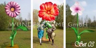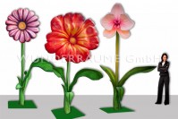 3 vollplastische Riesenblumen im Set; bis zu einer Höhe von 4 Metern; wunderschön gearbeitet; Die Blumen sind höhenverstellbar, können feststehend montiert oder in einer rollbaren Variante gemietet werden. Diese außergewöhnlichen und auffälligen Blumen sind auch für einen outdoor-Einsatz im Winter geeignet.