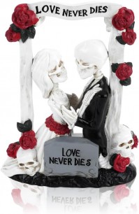 LOVE Never Dies 18 cm Brautpaar Liebespaar Tortendeko Hochzeitsschädel gotisches Skelett Gartendeko