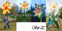 4 vollplastische Riesenblumen im Set; bis zu einer Höhe von 4 Metern; wunderschön gearbeitet; Die Blumen sind höhenverstellbar, können feststehend montiert oder in einer rollbaren Variante gemietet werden. Diese außergewöhnlichen und auffälligen Blumen sind auch für einen outdoor-Einsatz im Winter geeignet.