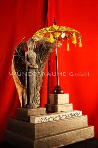 WUNDERRÄUME GmbH vermietet: Kunstvolles Deko-Arrangement Asien für Themendeko Asien, Buddha, buddhistisch, Statue, Buddhismus, Lounge, Tischdekoration