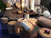 - inkl. 2 Sitzkissen Baumstamm (ca. 1,20m breit), 4 Sitzhockern, 4 Kissen, 1 XL-Kissenrolle, 2 Loungetische mit Glasscheibe, 2 Teppiche rund