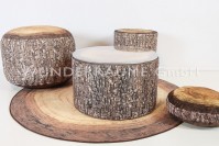- inkl. 2 Sitzkissen Baumstamm (ca. 1,20m breit), 4 Sitzhockern, 4 Kissen, 1 XL-Kissenrolle, 2 Loungetische mit Glasscheibe, 2 Teppiche rund