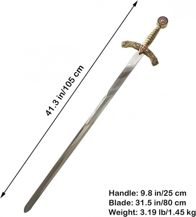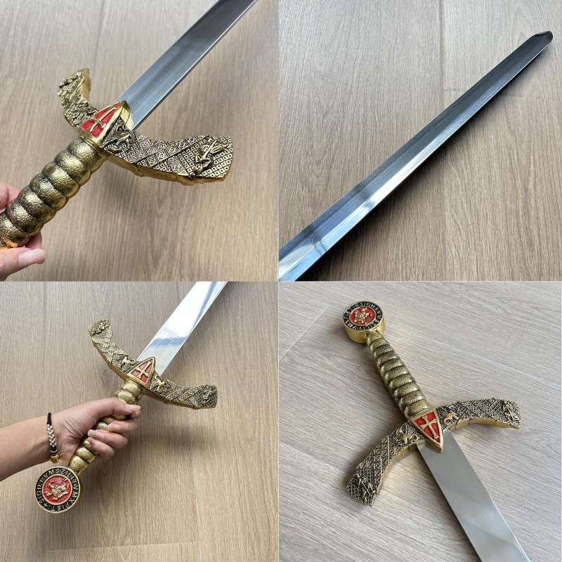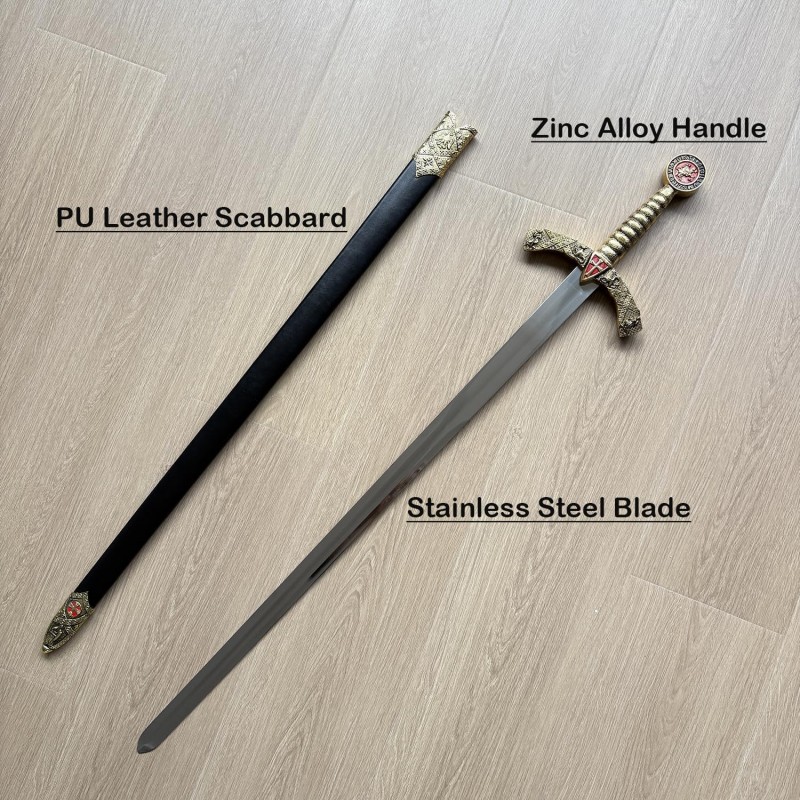 Ritterschwert Ritter-Schwert 108 cm mittelalterlich mit rotem Kreuz Edelstahl mit Scheide Cosplay Theater + Film Requisite oder Deko