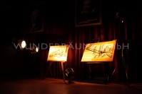 einmalige Original Filmscheinwerfer und Schautafeln als Kulisse/Bühnenbild, mehrteilige Dekoration bestehend aus 2 Schautafeln und 5 – 6 Filmscheinwerfern auf Stativen