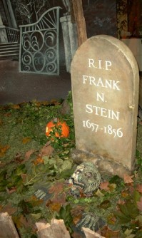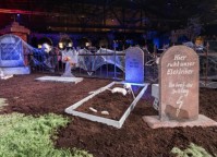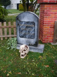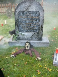 Auch alle anderen Dekorationselemente , wie Totenköpfe, Särge, Skelett, Spinnen, elektischer Stuhl, und und und.