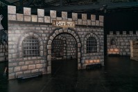 5 x 5 m großer Kerker, 2 Abteile für Zuschauer und Animateure und entsprechender Deko. Hinter die gitter können Sie unsere Animateure stellen oder schaurig, gruselige Dekoration aufbauen lassen – vielseitig einsetzbar ob auf dem Burg-,Mittelalter-, Piraten- oder Halloweenfest.