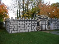 10x10m Irrgarten aus Burgmauern mit verschiedenen Eingängen ( Designs ) Gruselig – Totenkopf, Historisch – Burgtor.