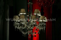 edle Kronleuchter in den Farben: weiß, ice, transparent, rot, messing, schwarz; von 5 – bis 14 armig. Die Galadekoration!