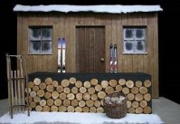 Ski- und Wanderhütten Fassaden zu vermieten, Skihütte, Almhütte, Oktoberfest, Party, Messe, Event, Veranstaltung, Zünftige Accessoires Ausstattung möglich.