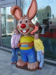 2m Cartoon Osterhase, der Blickfänger für Ostern. 3D, für innen und außen geeignet, zusätzliche Ausstattung möglich.