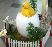 3 m hohes Osterei mit frisch geschlüpftem Küken