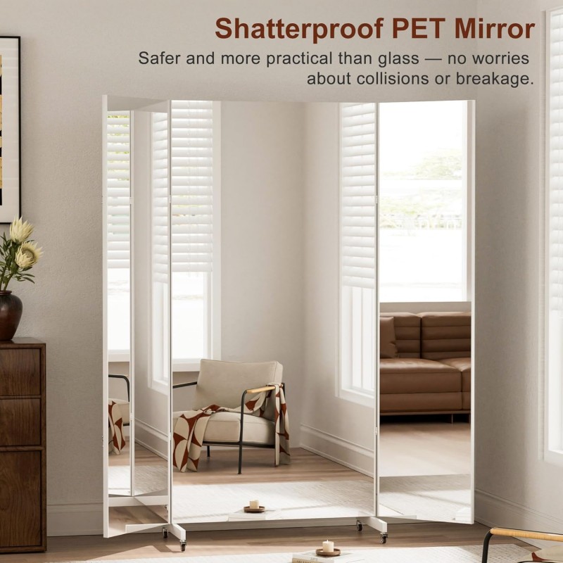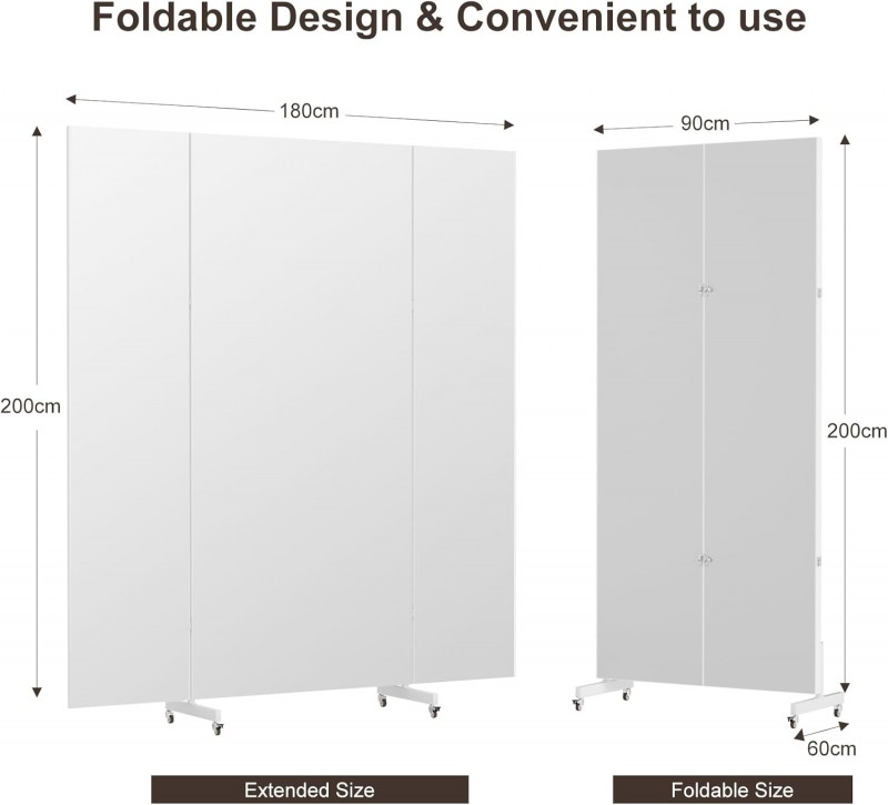 zusammenklappbar Standspiegel auf Rollen Spiegel