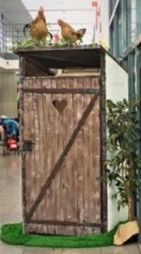 Alpenland, Klo, Toilette, Toilettenhäuschen, Kabine, WC, Dekoration, Oktoberfestdekoration, Party, Messe, Event, Veranstaltung