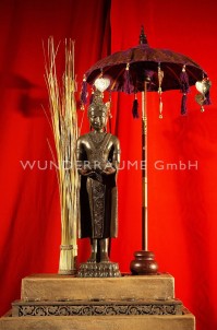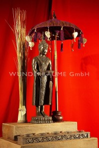 WUNDERRÄUME GmbH vermietet: Kunstvolles Deko-Arrangement Asien für Themendeko Asien, Buddha, buddhistisch, Statue, Buddhismus, Lounge, Tischdekoration