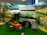 Campingplatz in den 50er und 60er Jahren Szenerie mieten, Dekorationsobjekte, Campen, Wohnwagen, Wohnmobil, Party, Messe, Event, Veranstaltung