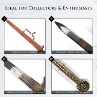 während die Zinklegierung des Griffs und der Parierstange für Stabilität
