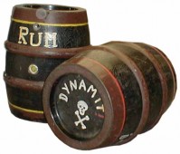 Teilweise Beschriftet mit Rum, Dynamit etc.