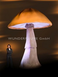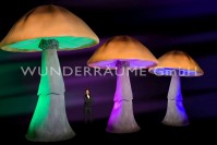 10 Riesenpilze vollplastisch; bis zu einer Höhe von 6 Metern; Pilze XXXXL; wunderschön gearbeitet; Die Pilzkappen sind mit integrierter Beleuchtung ausgestattet, ihre Farben können wechselnd. Auch 40 “kleine” Pilze, in den Größen von 60 cm bis 3 m Höhe, mietbar.