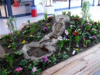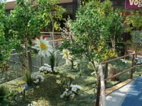 Künstliche Welt der Frühlingsblumen. Möglich auch mit ausgestopften Tieren, Vogelvolieren, Springbrunnen, Pavillons, unterschiedlichen Osterhasen oder anderen Dekorativen Elementen. So wie sie es wünschen.