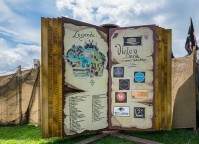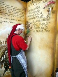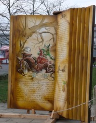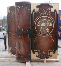 Das Riesenmärchenbuch ist 2,6m hoch und Aufgeschlagen 2,4m breit.