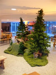 Waldlandschaft mit ausgestopften Tieren – mit und ohne Schnee , Winterlandschaft , Winterdekoration