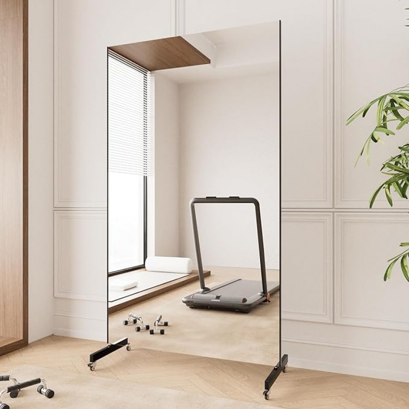 Ganzkörperspiegel 170 x 100 cm Spiegel Fitnessraum groß mit Rollen
