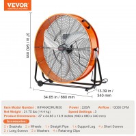 Industrieventilator Trommelventilator Windmaschine Innenventilator Bühnenventilator Trommelgebläse Standventilator 30 Zoll 3 Gänge 360° verstellbare 220 W