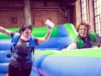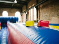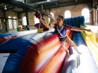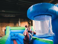 Das Modul ist entweder als klassisches Bungee Run mit einem Klett Schwamm oder als Alternative mit einem Basketball Korb buchbar.