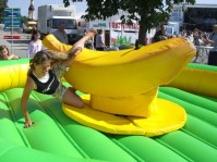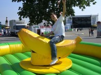 Rodeo auf eine andere Art und Weise! Hier reiten Sie keinen Bullen sondern eine wilde Banane. Der Klassiker in einer neuen Ausführung sorgt für garantierten Spaß und ist ein Hingucker auf jeder Veranstaltung. Lassen Sie sich nicht von dem leckeren Aussehen täuschen und erleben Sie den puren Rodeo Spaß! Verschiedene Geschwindigkeitsstufen und Bewegungsprogramme sorgen für echten Rodeo Spaß. Unser geschulter Mitarbeiter sorgt für einen reibungslosen Ablauf und animiert Ihre Gäste.