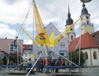 Hier ist Action pur angesagt!Saltos und Sprünge bis zu 7 Meter mit ultimativem Spaßfaktor.Platzbedarf (LxBxH): 11x11x7 MeterBenötigter Stromanschluss: 220 VoltDer Untergrund muss eben sein.Sicherheitsbestimmungen durch Bedienpersonal gewährleistet.Für Personen von 9-99 kg geeignet.Die Anlage ist vom Werk vorschriftsmäßig gebaut, und vom TÜV überprüft und abgenommen.