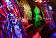 WUNDERRÄUME GmbH vermietet: Bar im asiatischem Stil mit Buddha-Büsten für Bars und Lounges, asiatischer Einrichtungsstil, Buddha, Buddhismus, Asien, Bali
