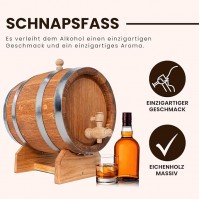Weinfass 5l Holzfass für Alkohol aus Eiche Getränkespender Alkohol Eichenfass Schnapsspender Holz