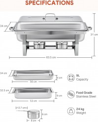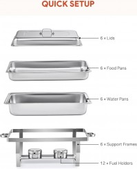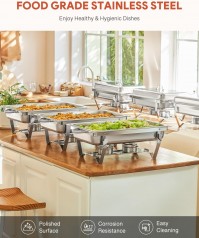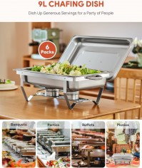 Jede Pfanne dieses 6-teiligen Chafing Dish Sets fasst bis zu 9 Liter Buffet-Set
