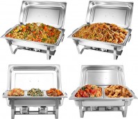 Buffetwärmer 4er Speisenwärmer 4er-Pack 9-l-Chafing-Dish-Set aus Edelstahl Buffet-Suppenwärmer mit 2