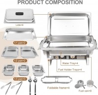 Buffetwärmer 4er Speisenwärmer 4er-Pack 9-l-Chafing-Dish-Set aus Edelstahl Buffet-Suppenwärmer mit 2 vollen Größen 2 halben Größen