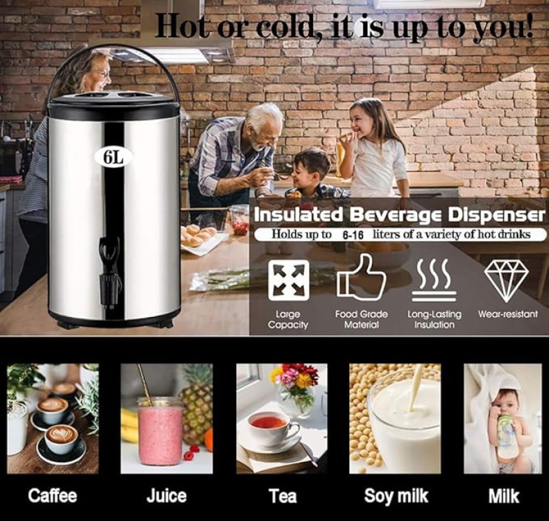 Suppenkessel isolierter Catering-Getränkespender Heißwasserspender Edelstahl mit Hahn 16 L Milchtee-Behälter für Getränke Kaffee Suppen