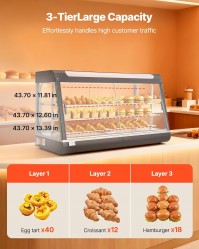 Wärmetheke 180 L 3-stöckig Warmhaltevitrine 1600 W Warmhaltetheke 30–85 °C Speisenwärmer LED-Beleuch