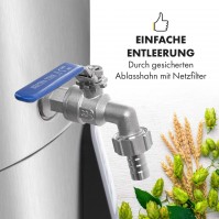 Ist die Maische fertig, wird sie mit dem Ablasshahn ganz einfach aus dem Kessel