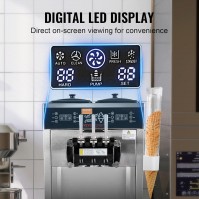 Kommerzielle Eismaschine Softeismaschine 34–44 L/h Leistung 1850 W freistehend 3 Geschmacksrichtungen 2 x 9 L Edelstahlbehälter LED-Panel Einzelzylindernutz