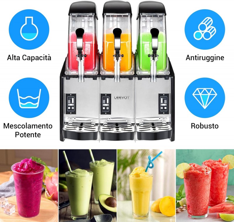 Diese Slush-Maschine verfügt über 3 x 12 l große Behälter,
