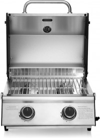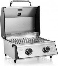 Tischgrill 455 x 455 x 345 mm 2 Brenner Gasgrill Edelstahl kompakt Camping BBQ