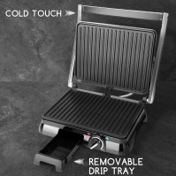 Panini-Grill Sandwichmaker Kontaktgrill 2000 Watt Edelstahl mit Antihaftbeschichtung Öffnung 180 Grad Temperaturregelung